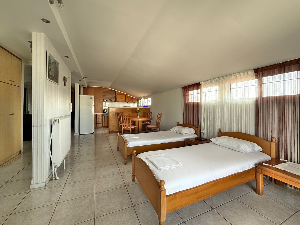 The Lucia Loft is a bright and versatile apartment located on the 4th floor of the Lucia Hotel Paralia. Here are the key highlights: