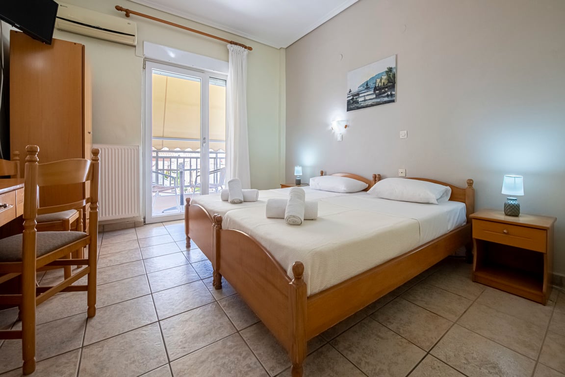 Our rooms are comfortable, bright, and fully equipped, featuring air conditioning, flat-screen TV, kitchenette, private bathroom, and balcony. Whether you are visiting for a short getaway or a longer stay, every detail is designed to make you feel at home.