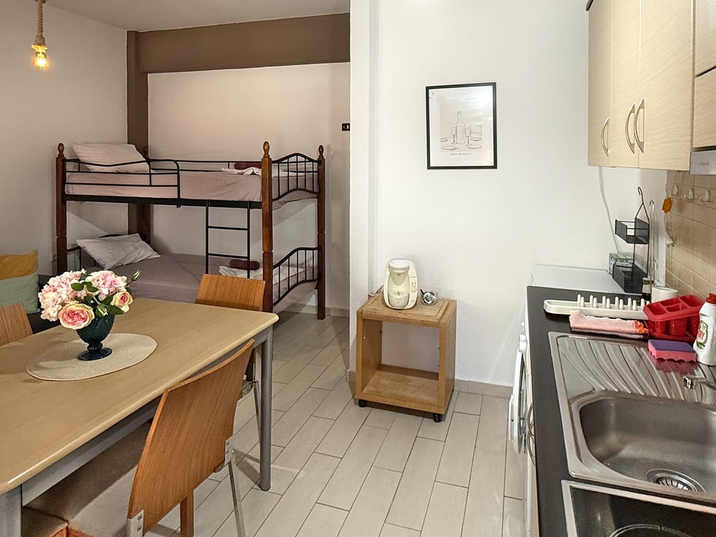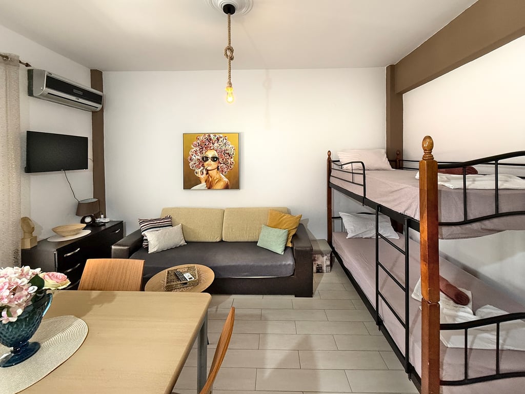 Welcome to Maria’s charming one-bedroom retreat in the heart of Paralia—just steps from the sun-kissed shoreline. This bright, 45 m² apartment is perfect for couples, small families or groups of friends, comfortably sleeping up to five adults.