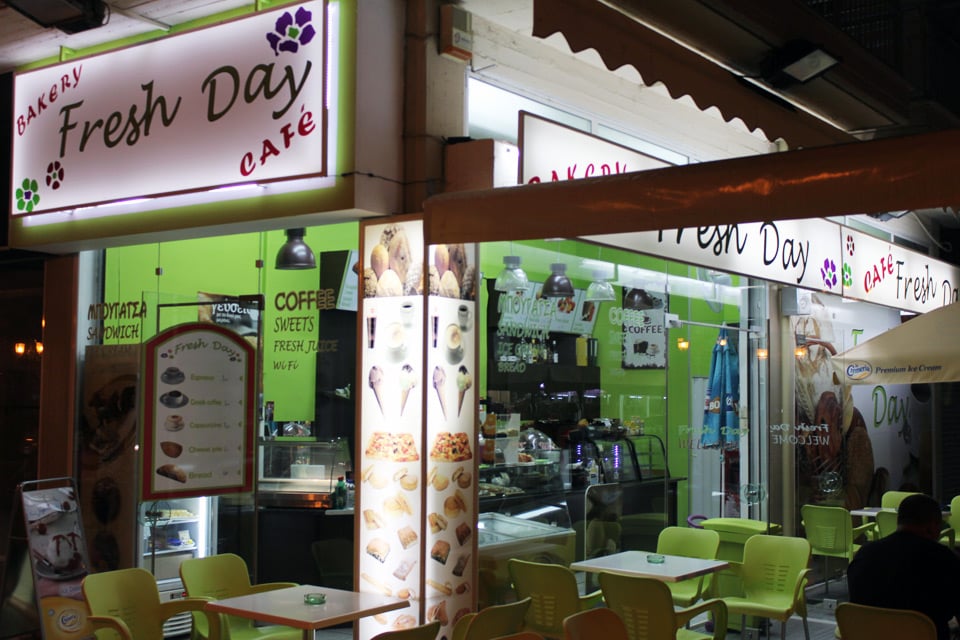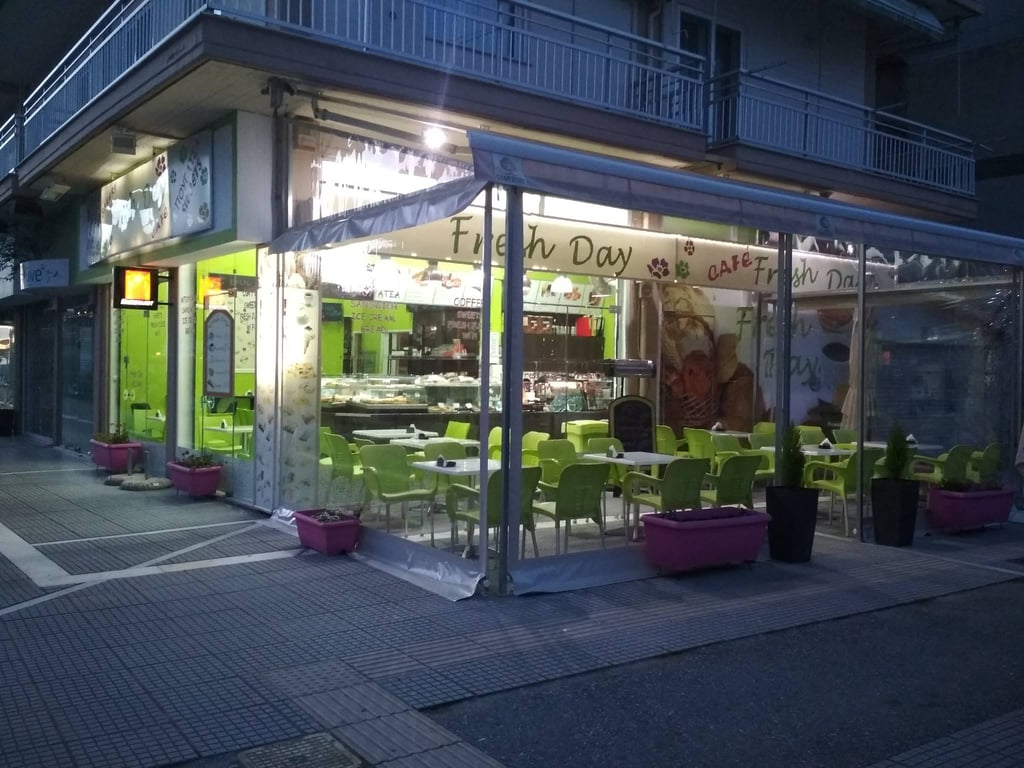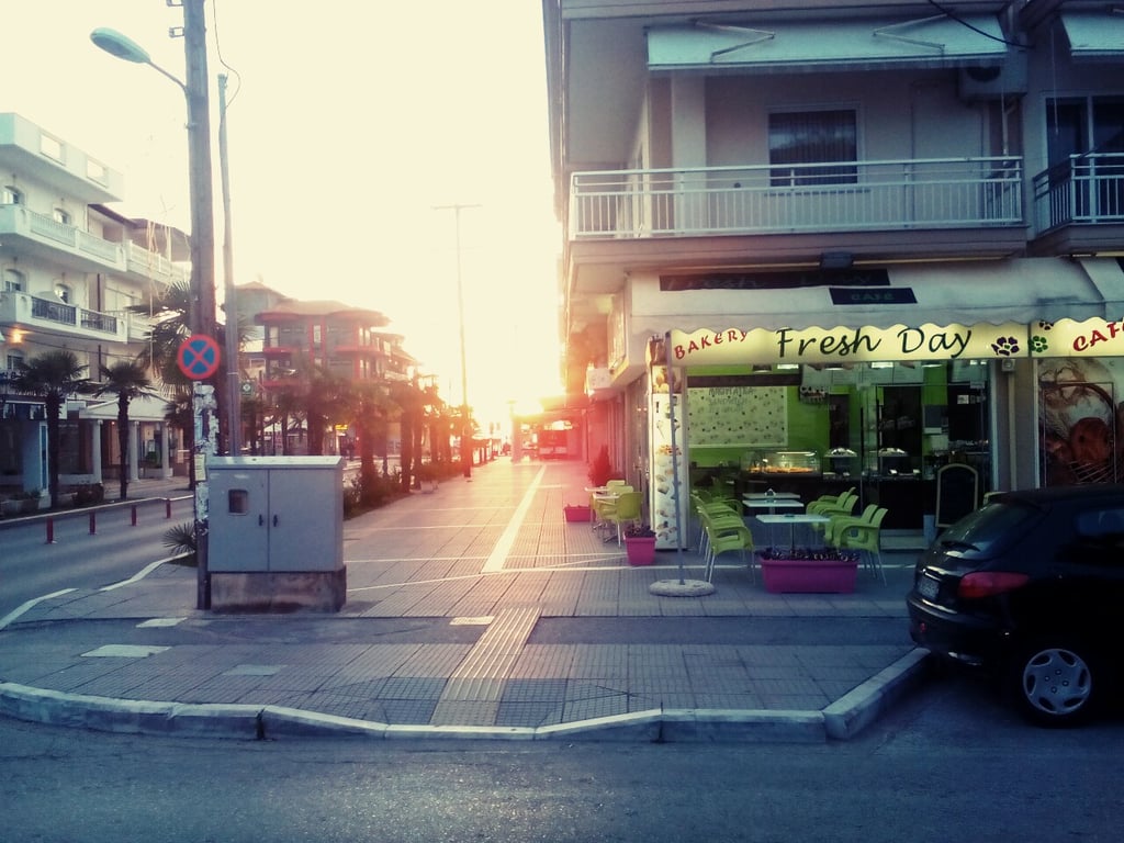 The FRESH DAY store is located at the entrance to Paralia Katerinis.