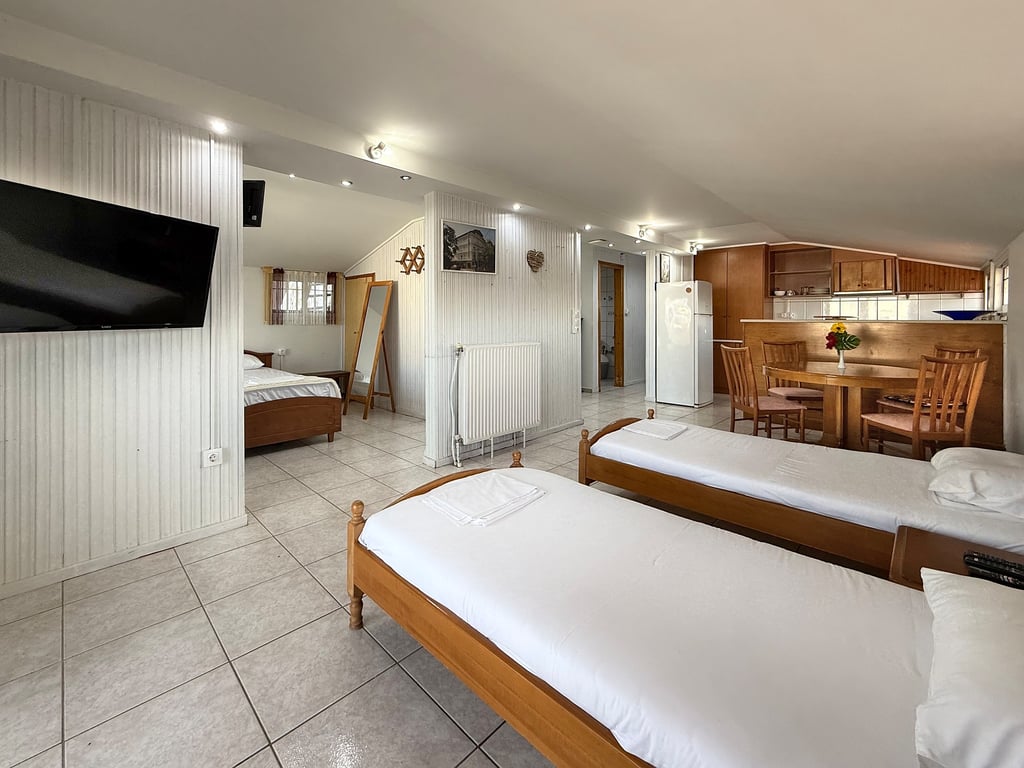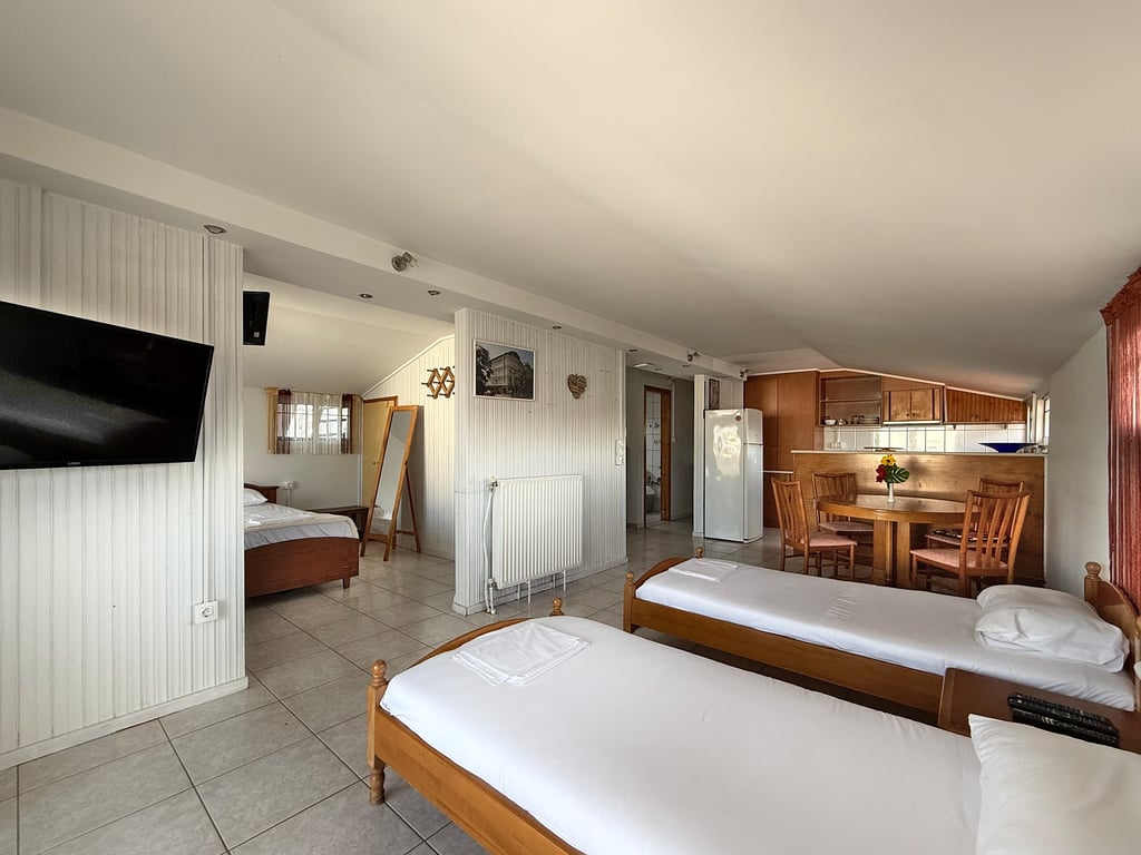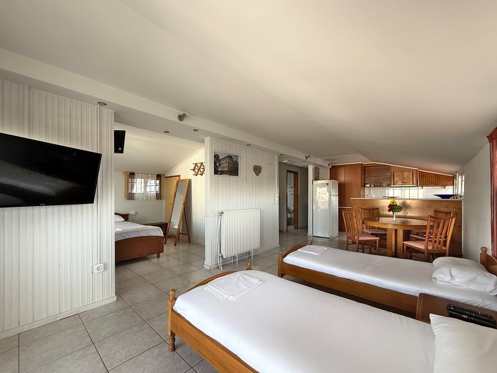 The Lucia Loft is a bright and versatile apartment located on the 4th floor of the Lucia Hotel Paralia. Here are the key highlights: