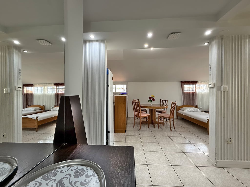 The apartment boasts two fully equipped bedrooms, a spacious living room, and a separate area—partitioned off from the living room—that functions as a third bedroom. This flexible design ensures comfort and convenience, making it ideal for various types of stays.