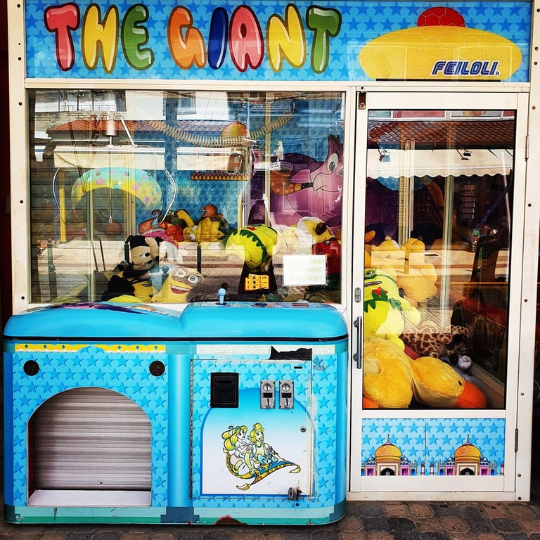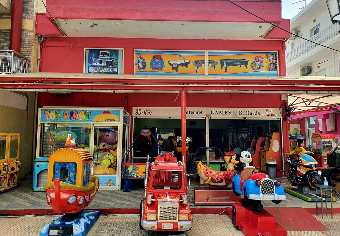 A place full of joy! Game and crane machines! coffee and deck chairs on sand :)