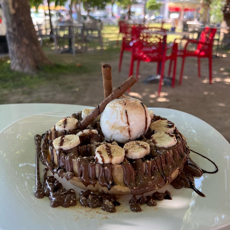 A wide variety of sweets and ice creams, close to the sea, modern decoration, very kind staff and prompt service.