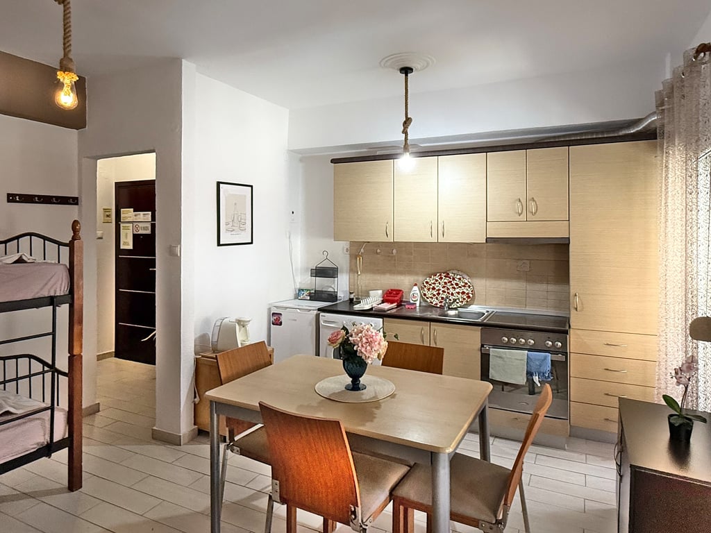 Welcome to Maria’s charming one-bedroom retreat in the heart of Paralia—just steps from the sun-kissed shoreline. This bright, 45 m² apartment is perfect for couples, small families or groups of friends, comfortably sleeping up to five adults.